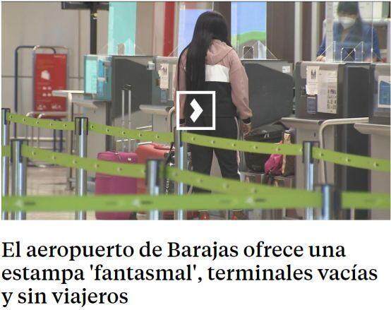 马德里电视台报道,站台几乎空了、商店关门了、没有旅客,这是马德里巴拉哈斯机场现在的状态。该机场失去了60%的航班,几乎变成了幽灵般的机场。据巴拉哈斯机场称,5日只有171班到达航班和172班出发航班,其中大多数集中在T-1和T-4航站楼。