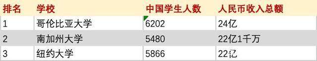 可以看到,哥大、南加大、纽大每年从中国学生身上得到的学费收入分别是24亿人民币,22亿人民币,21亿9千万人民币,这还不包含校内食宿。