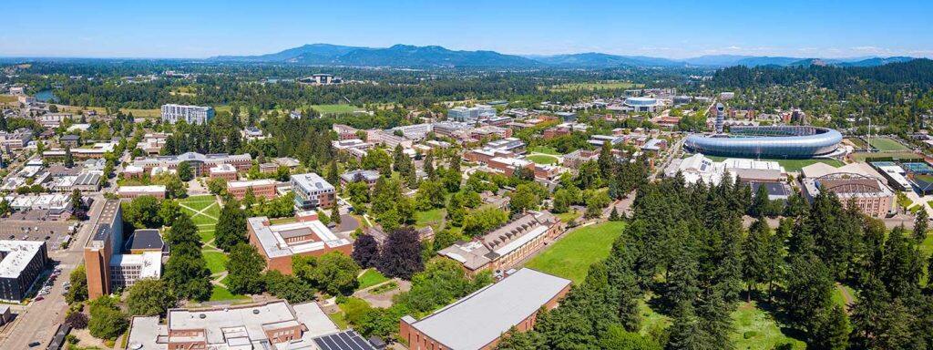 美国俄勒冈大学(University of Oregon,简称UO),创建于1876年,坐落于美国俄勒冈州的第二大城市尤金,是拥有百年历史的美国著名公立大学之一,也是美国大学协会(AAU)的成员之一。俄勒冈大学中商学院、教育学院和新闻传媒学院是学校最著名的三个学院,而教育学院长期排名全美前10。目前,俄勒冈大学在校生人数达到23634人(20067名本科生,3567名研究生),其中国际学生超过3200名。