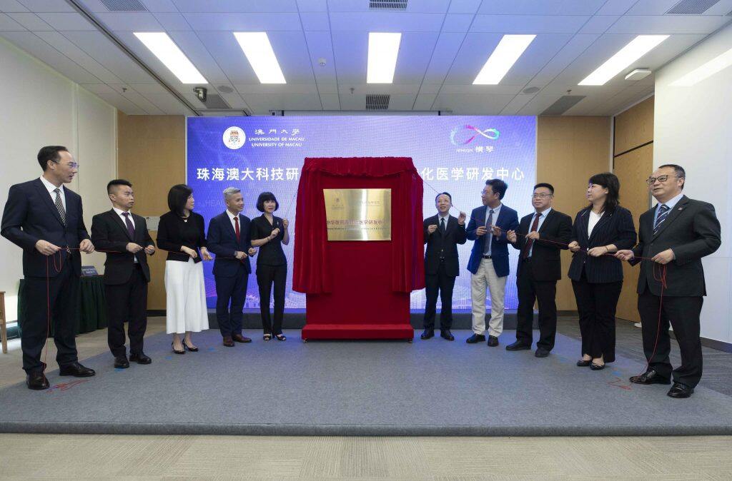 仪式上,中央人民政府驻澳门特别行政区联络办公室经济部副部长朱宏,澳门经济及科技发展局局长戴建业,粤澳中医药科技产业园董事长吕红,澳门教育及青年发展局副局长丁少雄,澳门大学校长宋永华,珠海市科技局创新局局长王雷,珠海横琴新区管理委员会副主任吴创伟,珠海市台港澳事务局副局长黄远鸿,珠海市人力资源和社会保障局副局长全冠和珠海市卫生健康局副局长黄芸共同为珠海澳大科技研究院中华医药及转化医学研发中心揭牌。中心的建成启用标志着中医药和转化医学研究合作上的新起点,为加快推动澳门大学在中华医药和转化医学领域的创新研究成果转化为现实生产力,进一步推动中医药、转化医学领域的科技创新发展,助力澳门大学融入湾区奠定坚实的基础,实现澳门产业多元化发展及珠海产业转型升级。