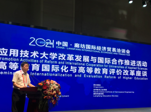 近日,由商务部与河北省人民政府共同主办的2021年中国·廊坊国际经济贸易洽谈会在廊坊开幕。河北科技大学应邀参会,副校长徐永赞到场参加应用技术大学改革发展与国际合作推进活动,并做了题为“中外合作办学评估实践解析”的专题报告,分享了该校中外合作办学相关经验。