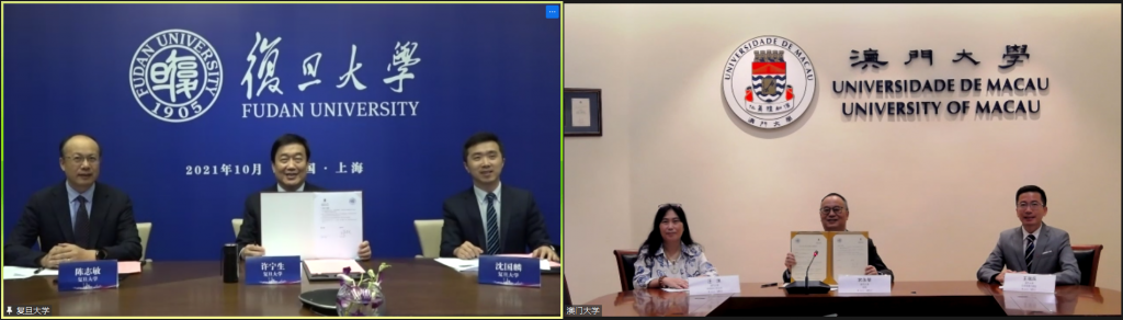 签约仪式采线上形式进行,陪同签约的代表还有复旦大学副校长陈志敏、港澳台事务办公室主任沈国麟,澳门大学校长办公室主任汪淇和全球事务代总监王瑞兵。