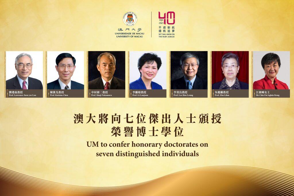 澳门大学将向刘遵义、陈凯先、中村修二、李兰娟、李效良、朱丽兰及江朝晖颁授澳大荣誉博士学位,以表彰其卓越成就、为社会和教育的发展所作出的重大贡献。有关荣誉学位及高等学位颁授典礼将于12月11日(星期六)下午4时在澳大大学会堂举行;此外,同场还会颁授博士、硕士学位和学士后课程证书/文凭。典礼设有现场及网上直播,让世界各地的毕业生和亲友都能参与其中。