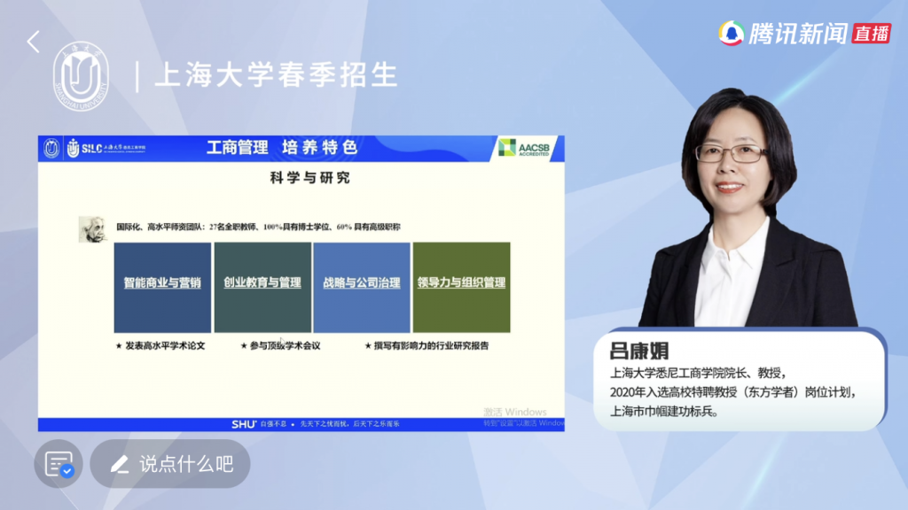 春招志愿填报在即,为帮助广大考生和家长更好的了解悉尼工商学院及工商管理专业, 2月18日上午,悉商举行工商管理专业春招线上宣讲会,吕康娟院长亲自在云端为考生及家长权威解读工商管理专业。