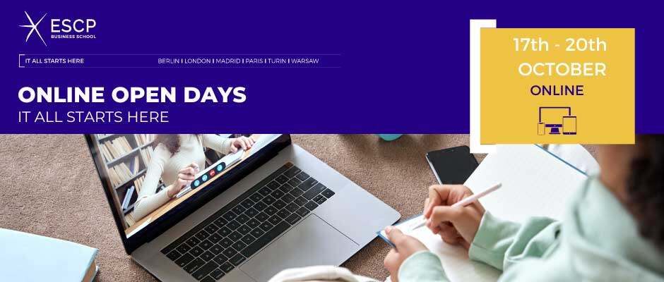 ESCP商学院是全球第一所商学院,在10月17日至20日期间,都灵校区将在线上向任何想要进一步了解这所学院及其课程的人士敞开大门。在线上开放日期间,你可以参加由我们的招聘人员举办的课程介绍会,并与ESCP的学生和校友见面,他们将向你介绍自己的求学历程和职业道路。你可以与演讲嘉宾尽情互动,咨询关于要求、课程、实习、奖学金等各个方面的问题。
