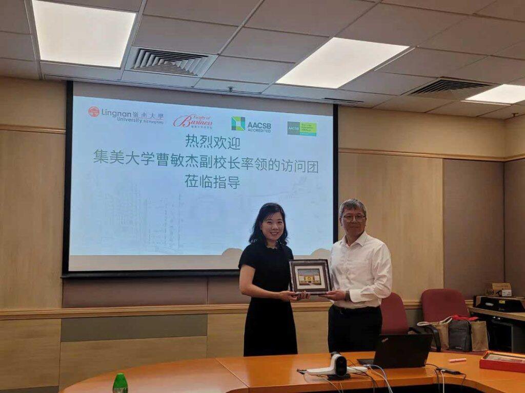 6月7日,集美大学副校长曹敏杰教授,台港澳事务办公室陈雅珍主任,工商管理学院院长邱吉福教授,美术与设计学院院长陈其端教授,计算机工程学院院长王宗跃教授,宣传部新闻中心陈振星主任,台港澳事务办公室吴小阳副科长,招生办公室谢大滔老师等一行八人莅临到访岭南大学。