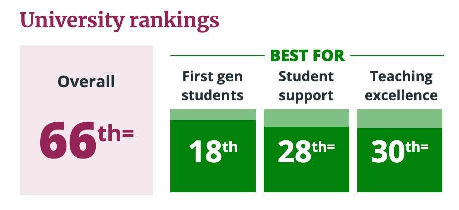 《每日邮报大学指南》是今年9月新出版的关于英国大学择校的指导。从毕业生就业、学生支持和社会认可度等多维度的进行衡量,提赛德大学在128所高校中以全英排名66,入围年度大学名单!