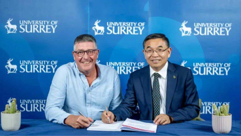 10 月 27 日(星期五),桑坦德英国大学助力计划的负责人Matt Hutnell与萨里大学校长逯高清(Max Lu)教授共同在Stag Hill校区举行了特别签字仪式。