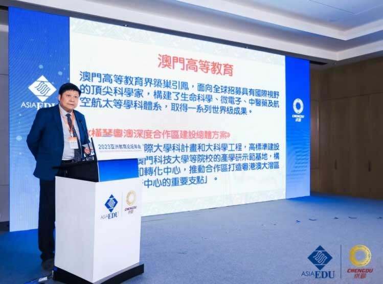 2023年11月11日,澳门科技大学国际学院院长张洪明讲座教授出席了在成都举办的“2023亚洲教育论坛年会”。“亚洲教育论坛”最初由菲律宾前总统Ramos、哈萨克斯坦斯坦前总理Tereshchenko、韩国前总理李寿成、尼泊尔前首相Bista、新西兰前总理Jenny Shipley、联合国教科文组织亚太地区曼谷教育办事处主任Sheldon Shover、澳门基金会前主席吴荣恪发起,于2003年由博鳌亚洲论坛、联合国教科文组织、中国国家留学基金管理委员会主办,迄今已成功举办了二十届年会,影响力遍及全球,日益成为世界各国政要、专家学者、院校、国际组织间交流和探讨教育合作与发展的高层平台。