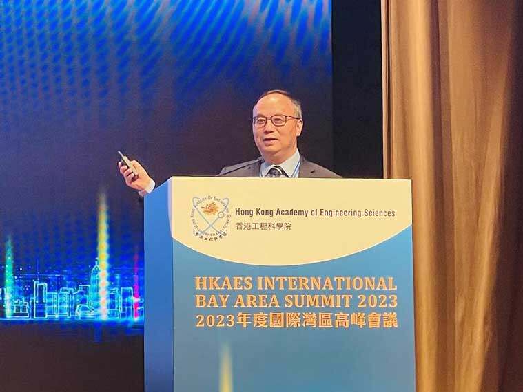 澳门大学校长宋永华应香港工程科学院邀请到香港出席“2023年度国际湾区高峰会议”,并在“分组会议一:高等教育的角色”中发表演讲,分享澳大推动粤港澳大湾区产学研协同发展的经验。