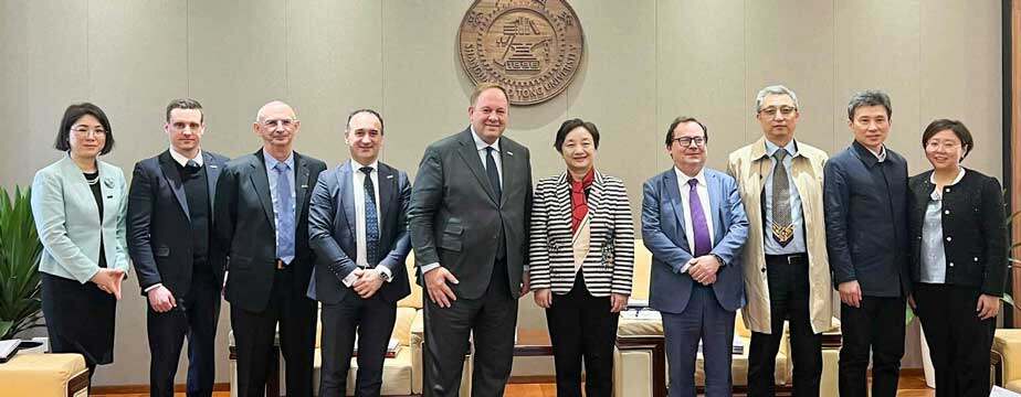 法国凯致商学院校长Alexandre de NAVAILLES一行的到访受到了上海交通大学的热烈欢迎。Alexandre校长介绍了法国凯致商学院的发展情况和优势教育资源,对上海交通大学二十年来在国际化办学取得的声誉表示祝贺,表达了继续与上海交通大学开展更深入合作的期许。