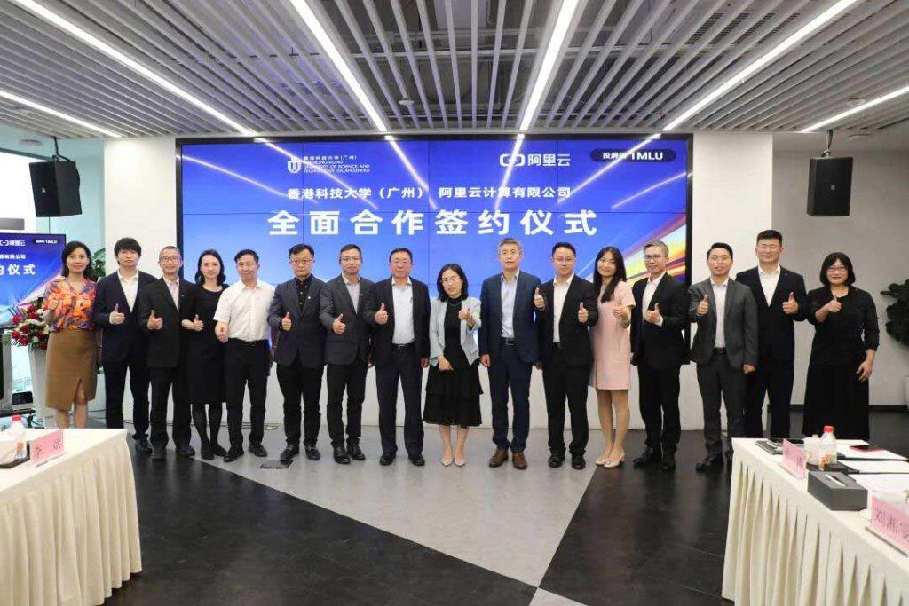 4月22日,香港科技大学(广州)与阿里云在广州签署校企全面合作协议。香港科技大学(广州)校长倪明选教授,阿里云智能市场总裁刘湘雯,香港科技大学(广州)校长特别助理兼校长办公室主任李斌博士,阿里云智能广东省区总经理张涛,香港科技大学(广州)信息枢纽院长,讲座教授陈雷,香港科技大学(广州)协理副校长(知识转移办公室),信息枢纽人工智能学域主任,讲座教授熊辉,校长办公室对外关系处兼人才服务处处长黄宇博士等领导嘉宾出席仪式,仪式由阿里云广东省区数字政府总经理袁清韵主持。