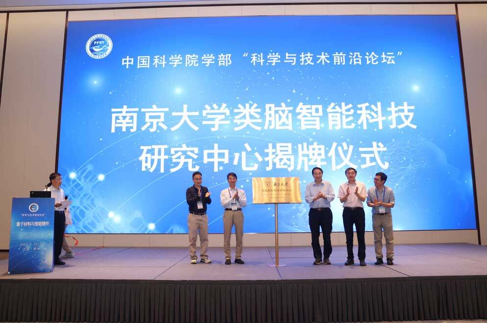 论坛期间,还举办了南京大学类脑智能科技研究中心揭牌仪式,由江苏省政协副主席、南京大学物理学院教授马余强院士主持,由邢定钰院士、谢心澄院士、郭万林院士、段文晖院士以及中心主任缪峰教授完成揭牌。类脑智能科技研究中心的成立,是南京大学紧密对接国家科技创新发展战略,从材料研究层面推动智能器件发展的重要体现。该中心的建立对推动类脑科学前瞻性研究、产学研深度融合及人工智能产业发展具有重要的战略意义。