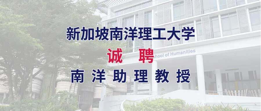 新加坡南洋理工大学人文学院诚聘本学院主要学科的南洋助理教授(Nanyang Assistant Professor (NAP))。本学院主要学科包括艺术史、中文、英文、历史、语言学与多语言研究以及哲学。